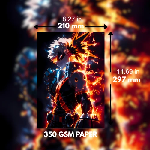Unleash the explosive power of Bakugo Katsuki with this A4-size poster (21 x 29.7 cm) from My Hero Academia! Surrounded by intense flames and fiery effects, this artwork perfectly captures Bakugo’s fiery personality. Printed on durable 350 GSM paper, this poster offers vivid colors and lasting quality, making it an ideal choice for all My Hero Academia fans