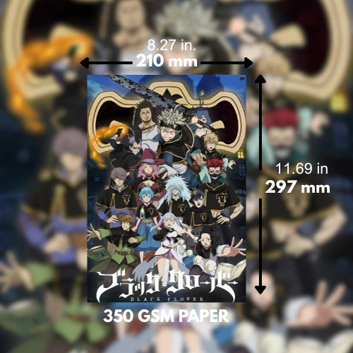 “Celebrate the might of the Black Bulls with this A4-size poster (21 x 29.7 cm) from Black Clover! Featuring all the main members, this vibrant artwork brings the team together in action. Printed on durable 350 GSM paper, this poster is perfect for Black Clover fans who want to showcase their favorite squad in full glory.”