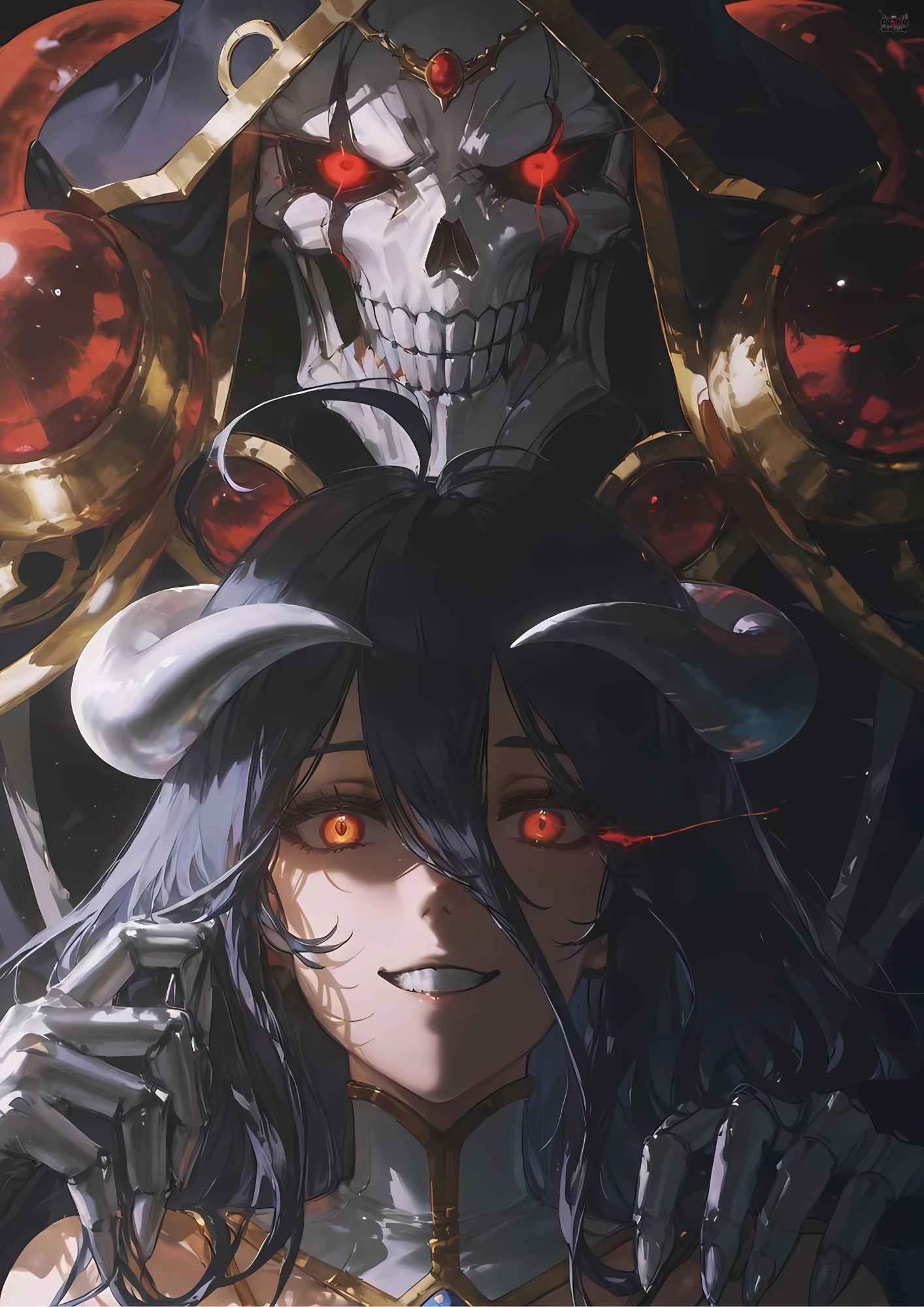 demonic-couple,A4 poster featuring a demoness and an undead character together, radiating dark energy, with a mysterious bond.