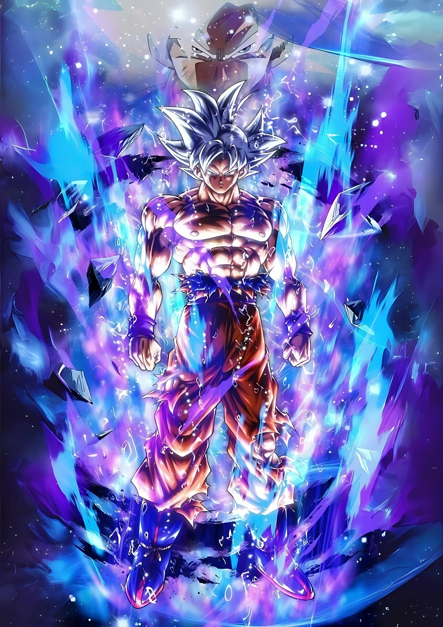 goku-ultra-instinct-power,Intense A4 poster of Goku showcasing his Ultra Instinct form.