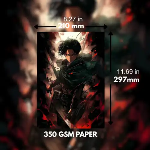 Embrace the quiet strength of Levi, the greatest soldier, in this A4 size premium poster. Standing alone in the chaos, Levi’s calm determination in the face of battle is depicted with incredible detail. Printed on high-quality 350 GSM paper to bring out the vibrant colors and sharp details of the scene.